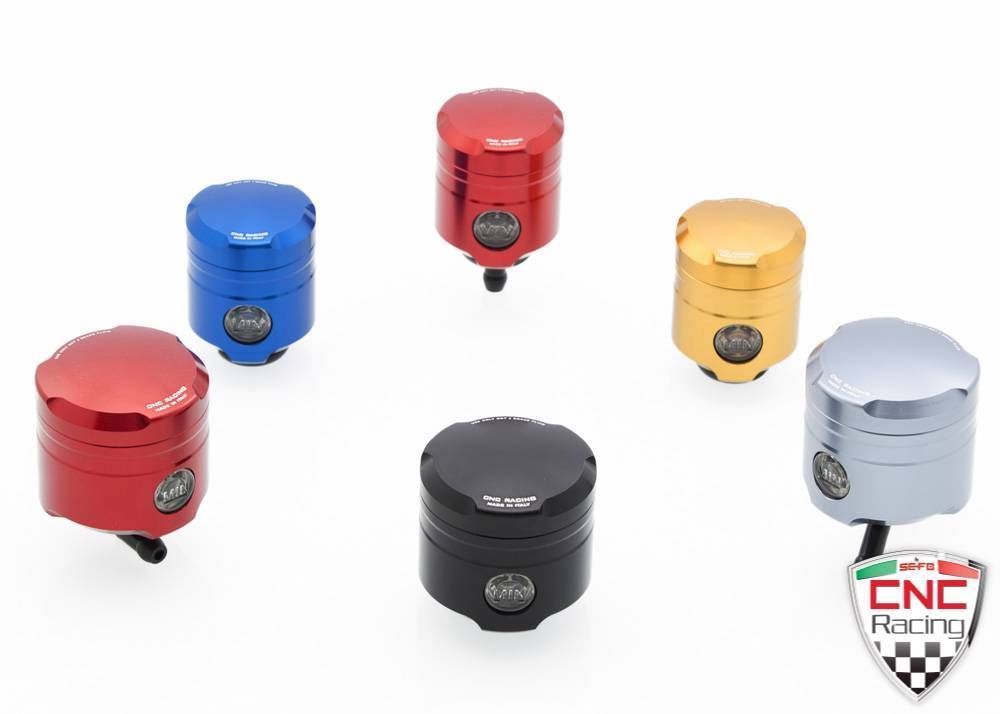 CNC Racing fluid tanks brake/clutch. Made ??entirely from solid solid Aluminum with subsequent anodizing surface that, besides conferring a broad range of colors, ensures quality and durability.