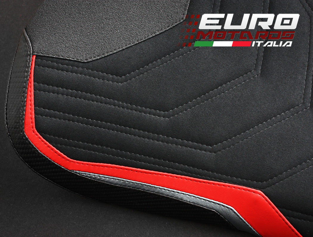The MV Agusta F4 Veloce seat cover is hand made with all our finest materials. A unique ribbing pattern is implemented into the suede riding surface to evoke the emotion of speed. Marine-grade leather and carbon fiber look panels accentuate the beautiful lines and colours of your motorcycle. This is the ultimate expression from Luimoto to your MV Agusta.